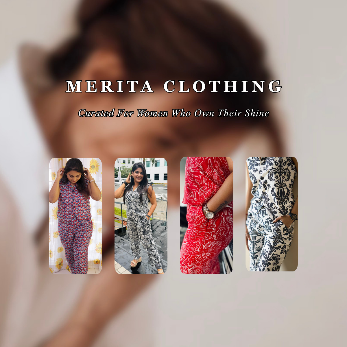 Merita is a modern woman-owned brand redefining everyday fashion with purpose and precision. Each outfit is built from the ground up—fabric curated thoughtfully, designs sketched with detail, and tailoring crafted to perfection. From workwear to Indo-western and casual fits, Merita delivers style that’s original, refined, and made for the woman who owns her day.